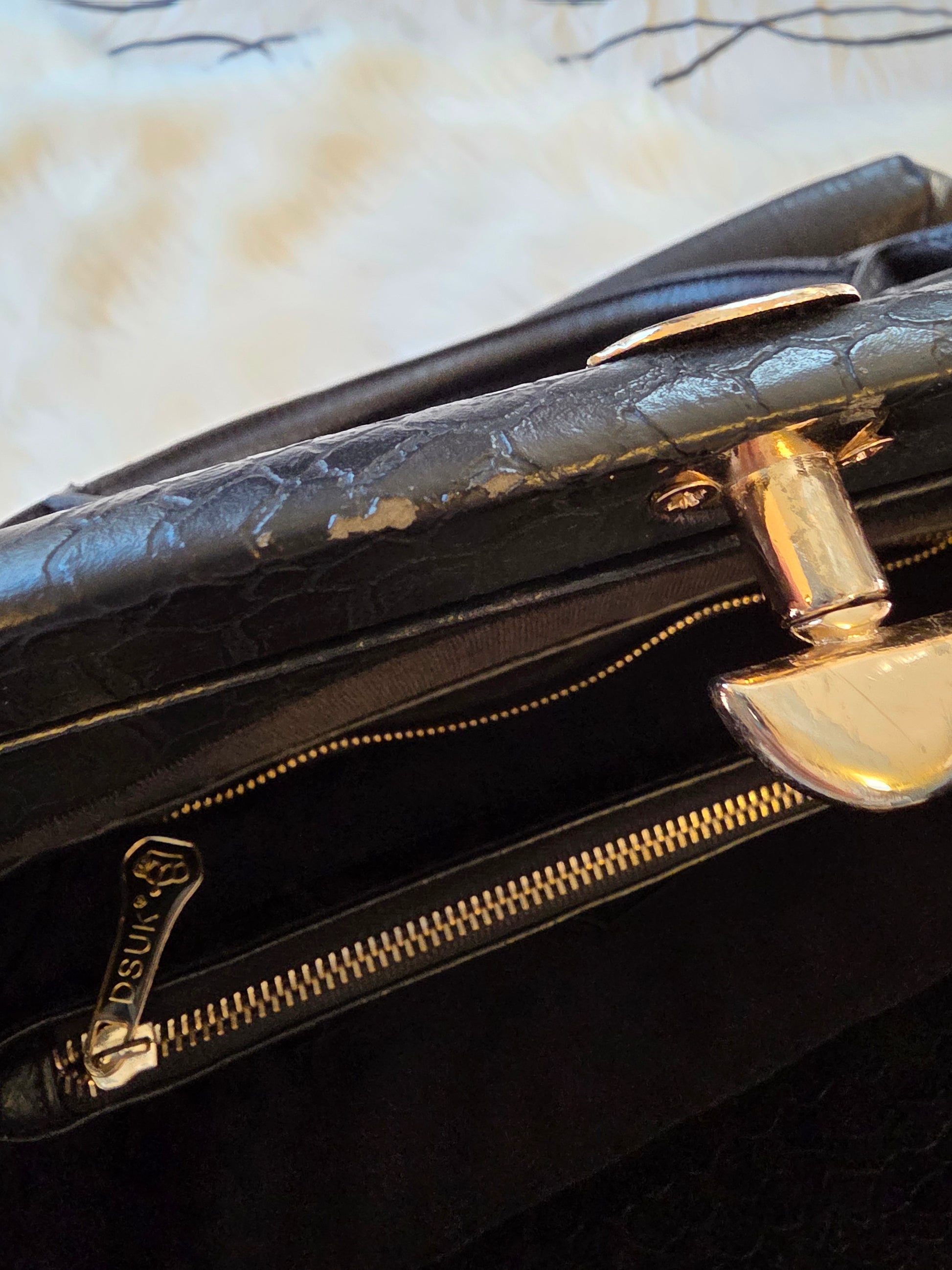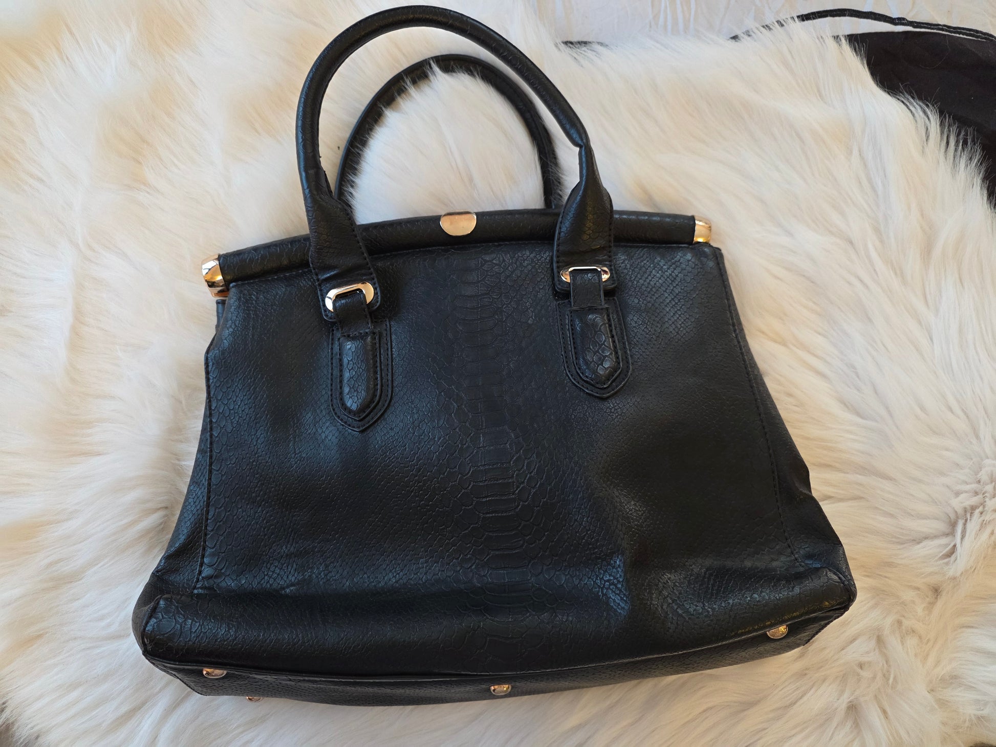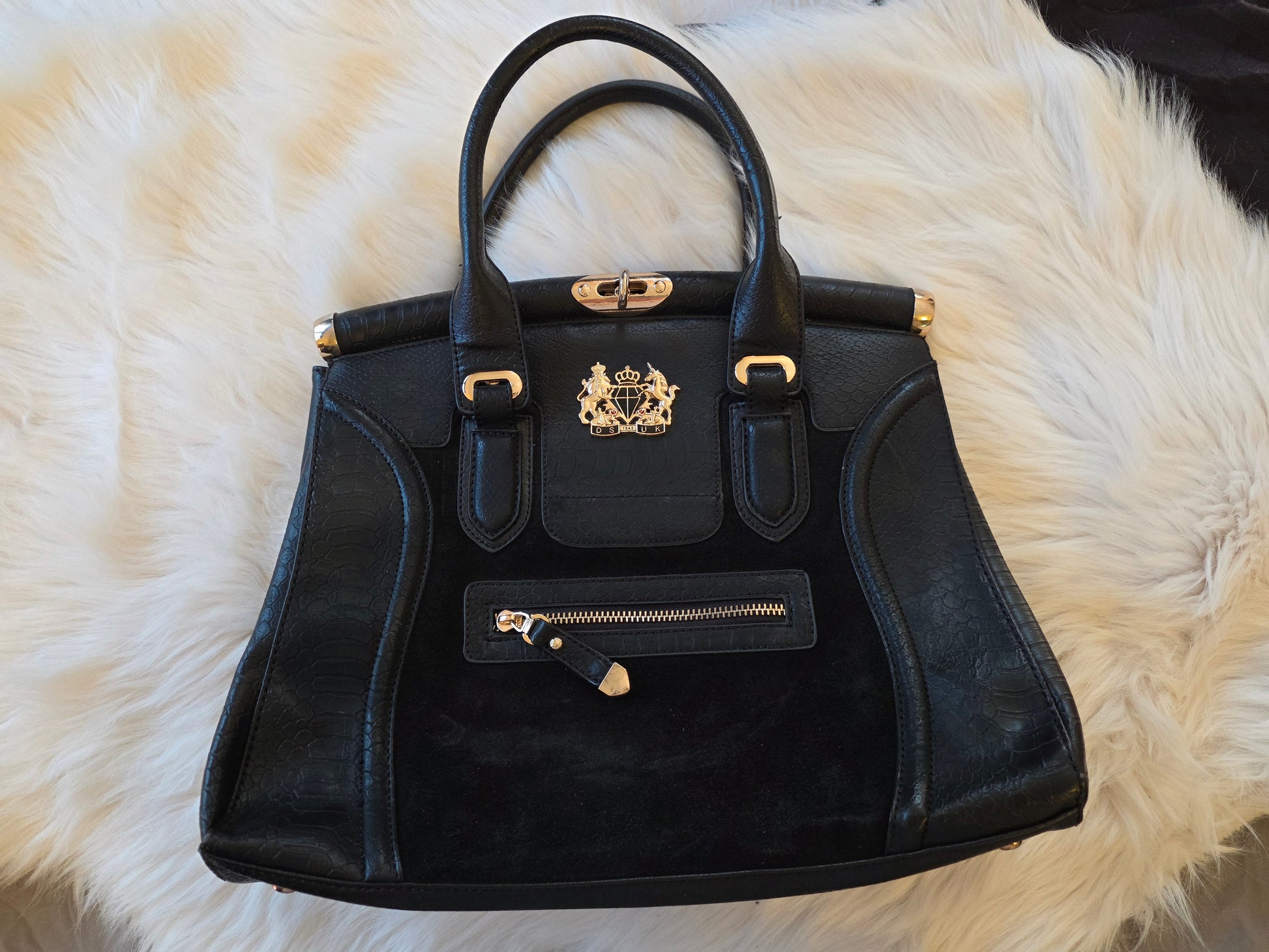 Style: Structured tote with faux croc-embossed and suede mix, gold hardware